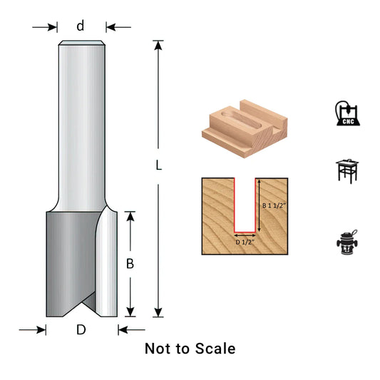 1/2" Diameter, Carbide Tipped, Straight Bit, 2 Flute, 1/2" Shank, 3" Length