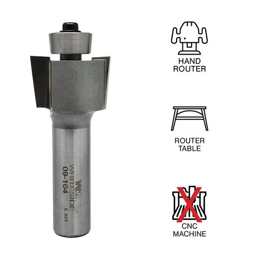 1" Diameter, Carbide Tipped, Rounding Over Bit with 1/2" Ball Bearing, 2 Flutes, 1/4" Shank, 1 15/16" Length