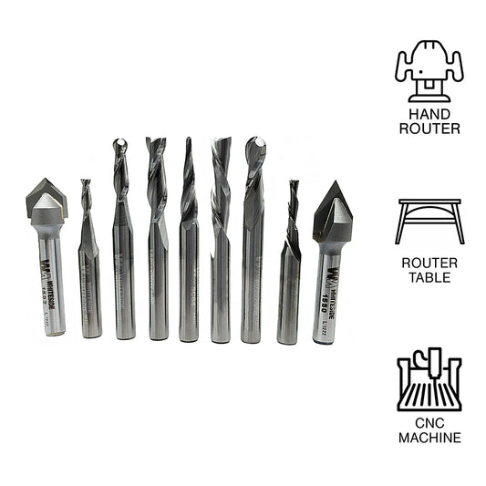 9 Piece CNC General Purpose Bit Set 1/4" Shank