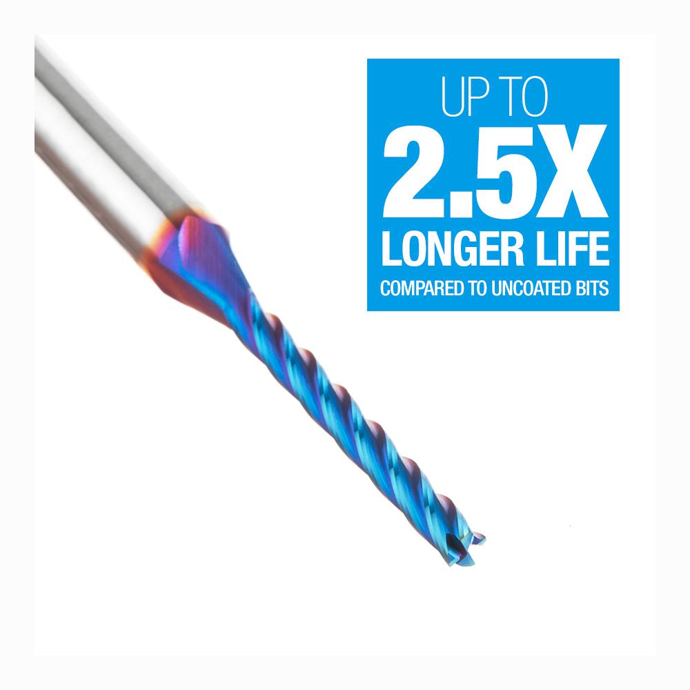 CNC 2D and 3D Carving Flat Bottom 0.10 Deg Angle x 1/8 Diameter x 1-3/32 x 1/4 Shank x 2-1/2 Inch Long x 4 Flute Solid Carbide Up-Cut Spiral Spektra™ Extreme Tool Life Coated Router Bit