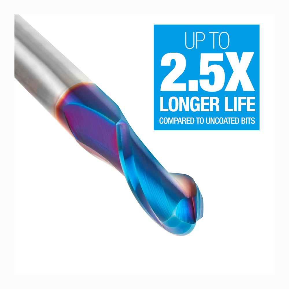 Solid Carbide Spektra™ Extreme Tool Life Coated Up-Cut Ball Nose Spiral 1/2 Diameter x 1-1/4 Inch x 1/2 Shank Router Bit
