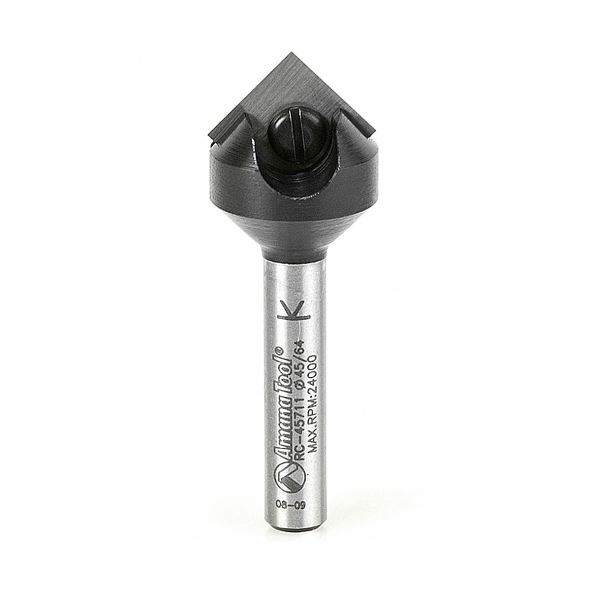 Amana Tool In-Tech Insert Carbide V Groove 90 Degree x 11/16" Diameter x 21/64" x 1/4" Shank Single Flute Router Bit