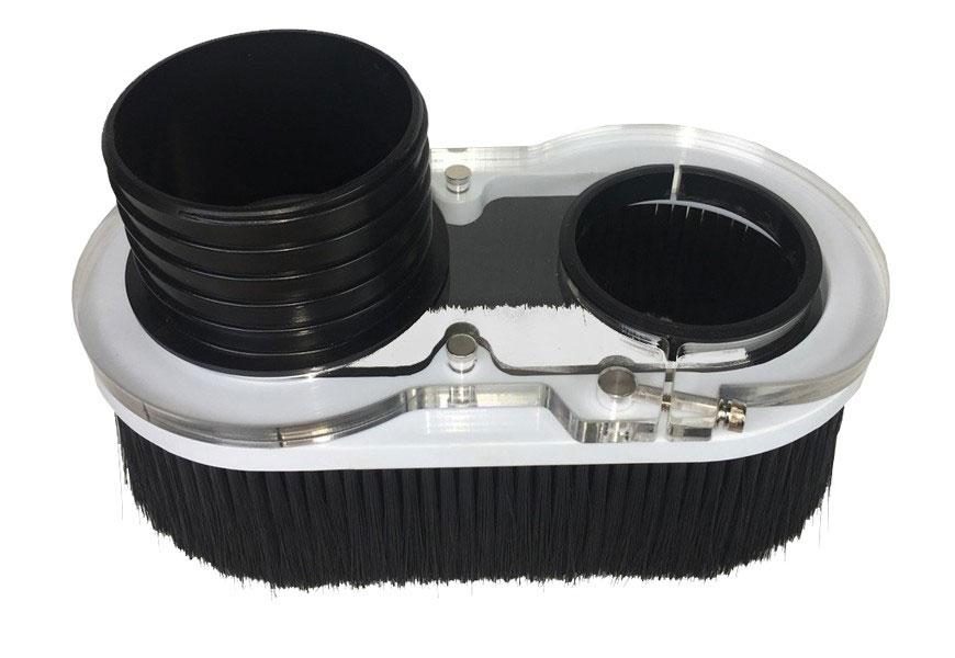 Our most popular accessory, the Axiom Dust Shoe provides a nearly dust-free routing environment. Rare-earth magnet closure allows quick removal of the brush head to provide spindle access.