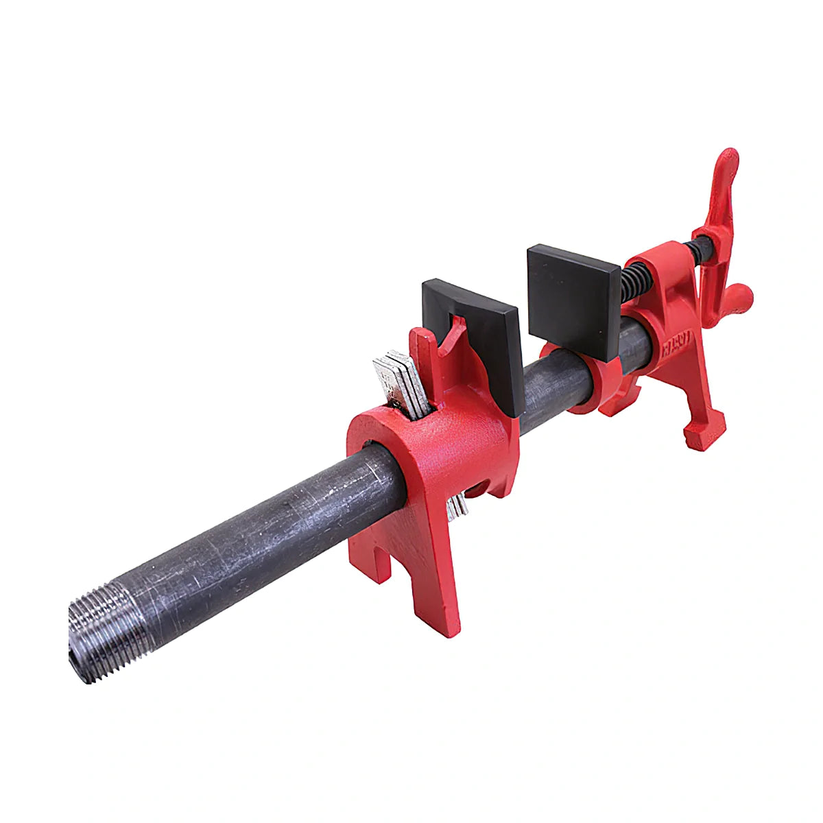 Bessey Tools® PC Series pipe clamps are ideal for edge gluing of multiple pieces. These pipe clamps can be used with a variety of pipe lengths, making them incredibly versatile. This traditionally styled version features ACME threaded spindle, a rugged main casting, a high base and multiple clutch plates. These Bessey Tools pipe clamps are easy to assemble and are an indispensable workshop tool.