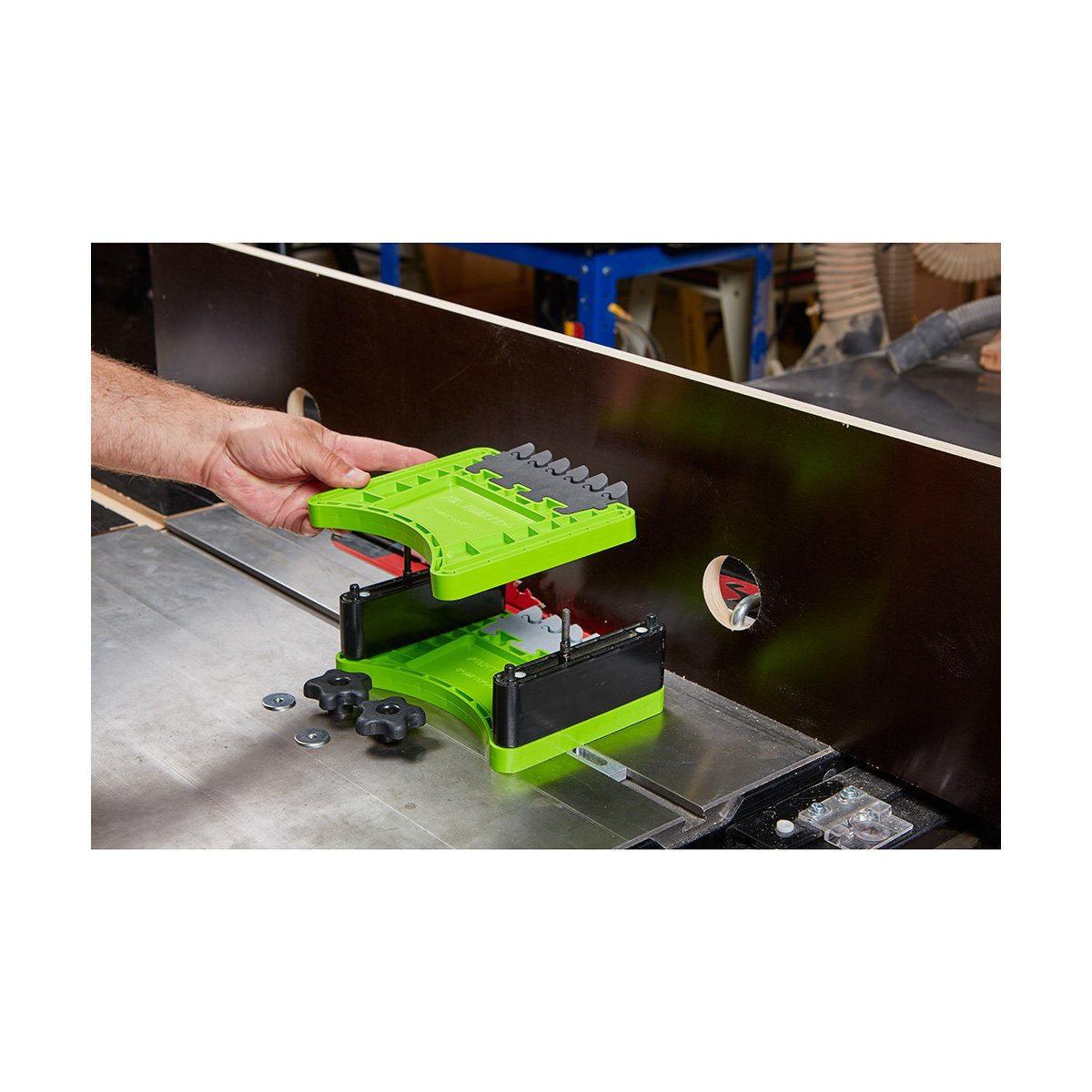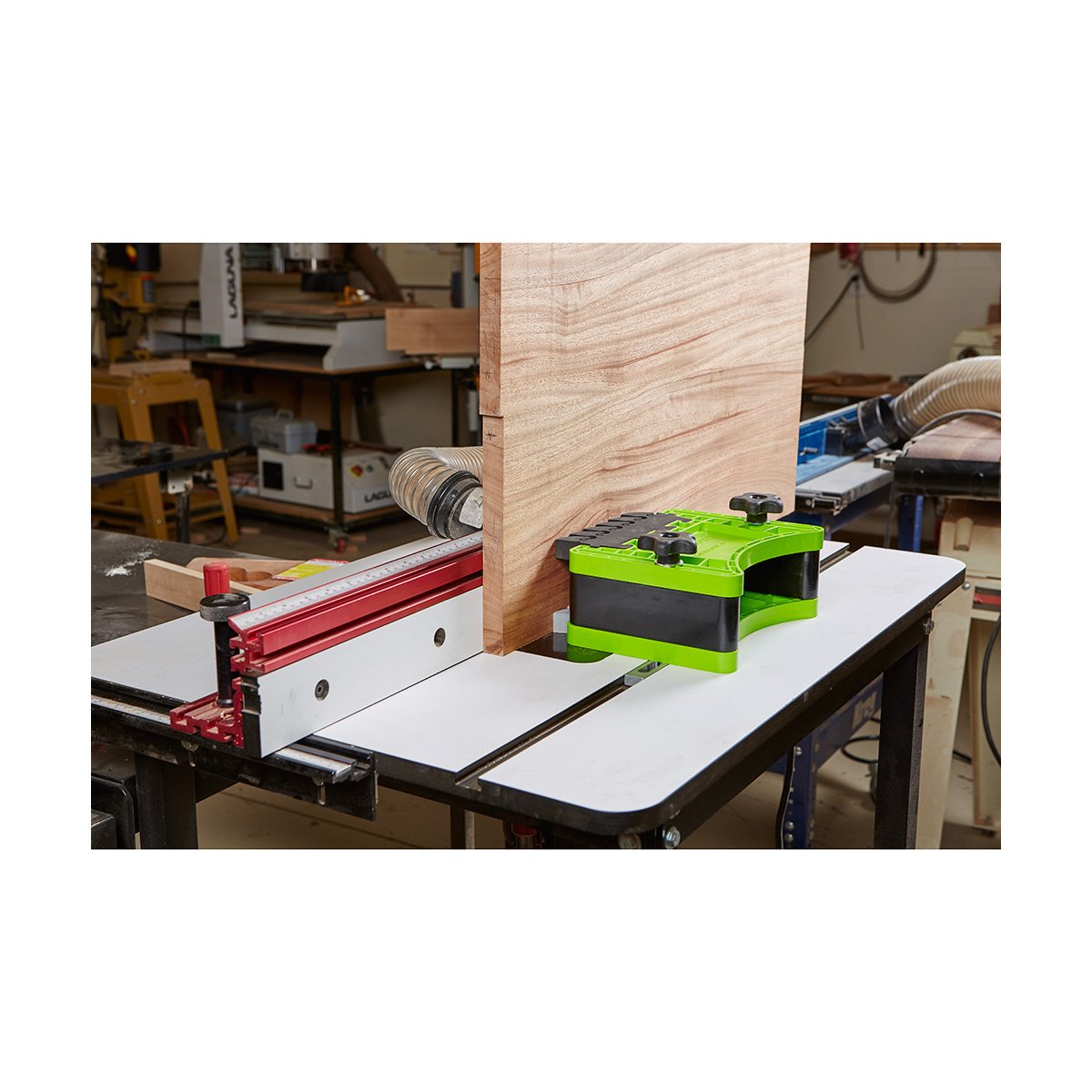 - Ideal for feeding taller material on table saws, bandsaws, and router tables