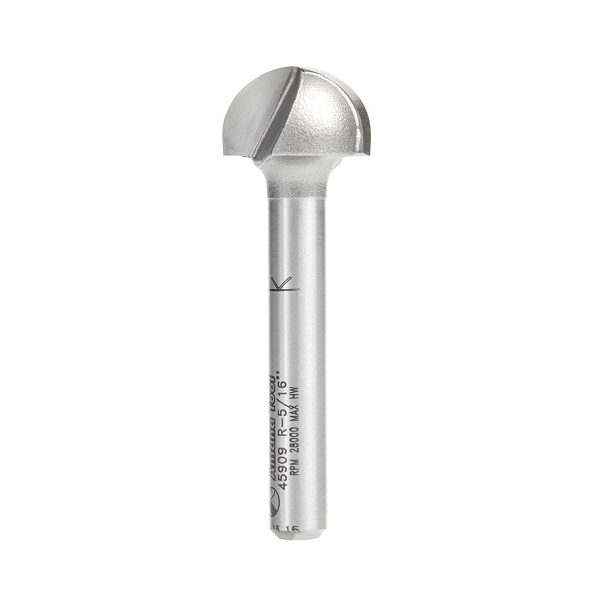 Amana Carbide Tipped Core Box 5/16 Radius x 5/8 Dia x 3/8 x 1/4 Inch Shank SKU: 45909 (D) Diameter: 5/8" Radius (R) 5/16 (B) Cutting Height: 3/8" (d) Shank:...Full description below