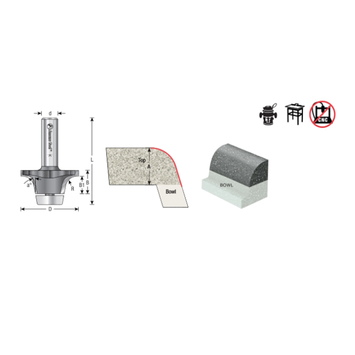 Amana Tool Carbide Tipped Undermount Bowl Solid Surface 2-1/8 Dia x 1 Inch x 17 Deg x 1/2 Shank
