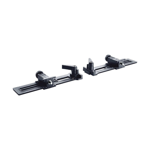 The Domino Trim Stop enables precise and repeatable mortise placement in ends of narrow workpieces, such as rails or spindles. Designed for material between 7/8 inch and 2-3/4 inch (22 mm and 70 mm) in width. Sides adjust independently for centered or off-center mortising. Attaches quickly and easily to the Festool Domino Joiner without the need for tools.