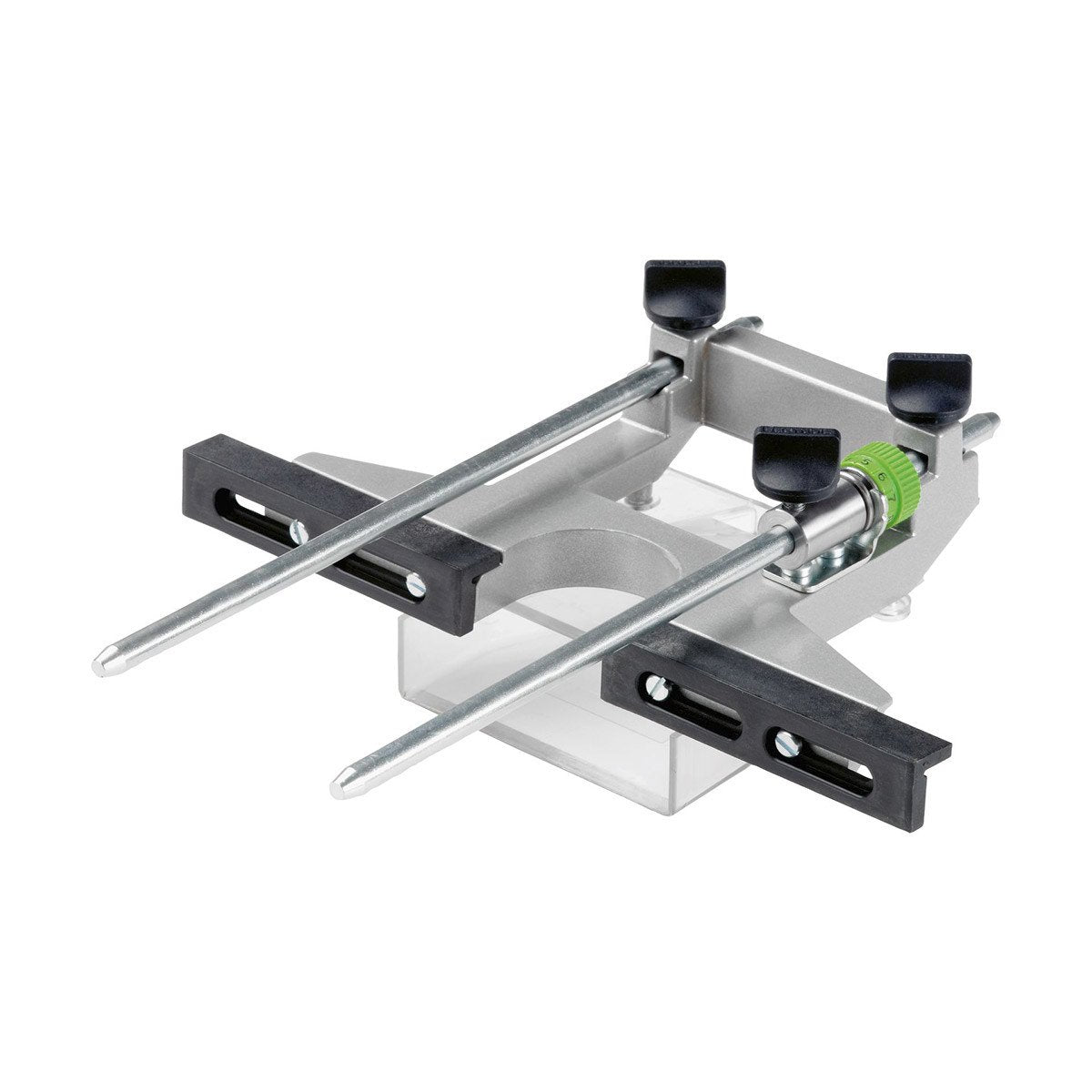 When used with the Festool MFK 700 Multifunction Router, the Parallel Edge Guide allows you to rout up against, or perfectly parallel to the material edge, delivering precise dados, flutes, grooves, ploughs, rabbets, and profiles. Fine-adjustment control allows you to dial in the distance from the material edge in increments of 1/10mm for ultra-precise routing. The Edge Guide is constructed from durable cast aluminum and includes fiber-reinforced plastic thumbscrews for easy adjustment and long service life. Attaches quickly and easily using integrated thumbscrews and included two steel rods. Dust extraction hood enables ultra-efficient dust extraction, saving valuable cleanup time.