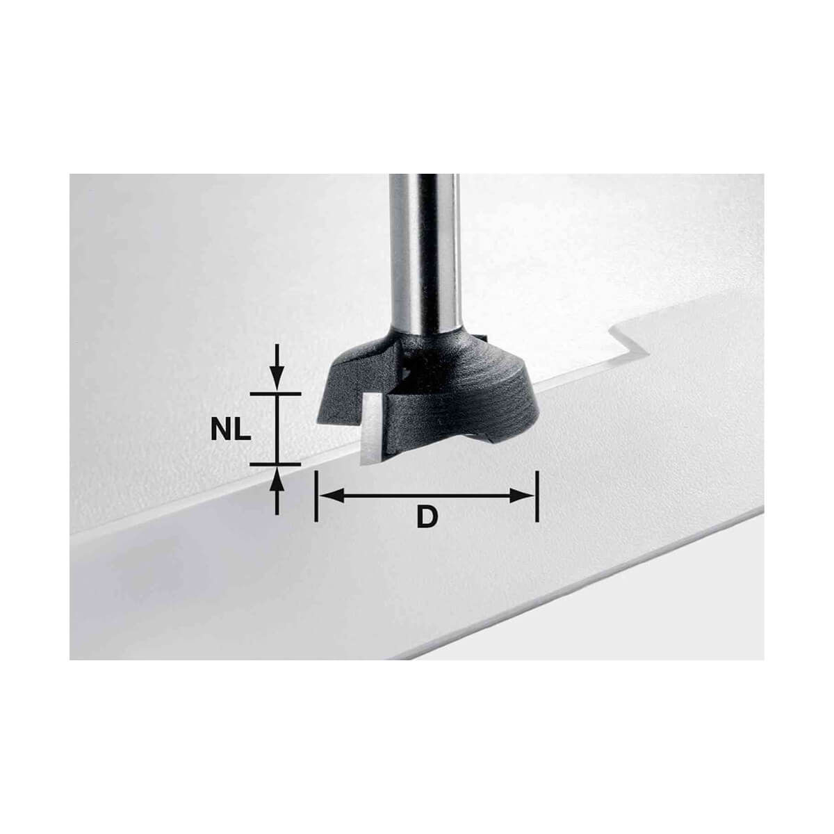 For use with the Festool MFK 700 Trim Router, this router bit removes excess edge banding material for flush trimming on flat or beveled pieces. Diameter (D) of 28mm and cutting height (NL) of 7mm.