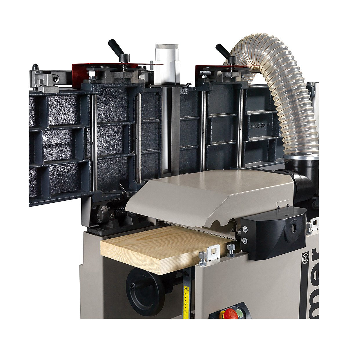 • Quick conversion from planer to thicknesser. Dual, simultaneous lifting of planer tables.