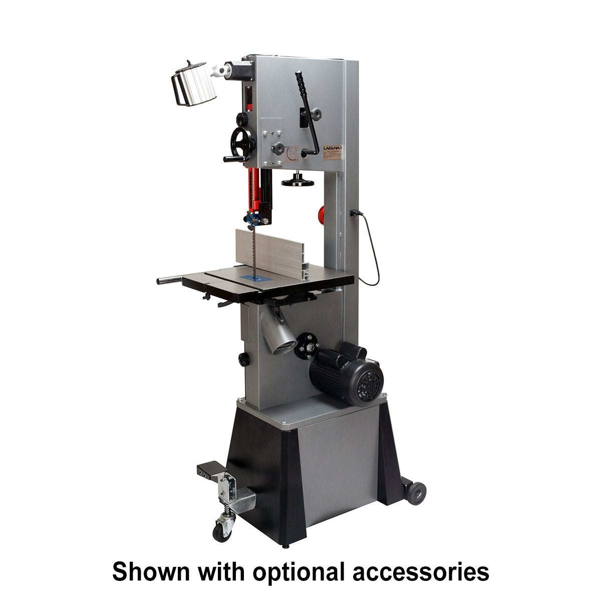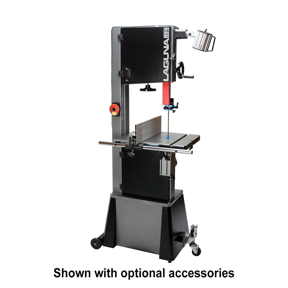 The 14|12 Bandsaw is a 110 Volt saw that feels like a 220. Features include pyramid-shaped spine, 1 ¾ HP TEFC Motor, quick release tension, 115-volt outlet and micro-polished 21″ x 16″ table mounted onto oversized Trunion paired with Aluminum Hi/Low Fence. Solid Cast Wheels are electronically, dynamically balanced & fitted with polyurethane one-piece tires designed to run cooler & last longer than conventional tires. The worm gear & pinion is ultra-smooth and engineered to have minimum flex even when fully extended. This is a trademark of Laguna, just like the famous ceramic Laguna guides. Double windows allows you to check both tension & tracking while the machine is running.