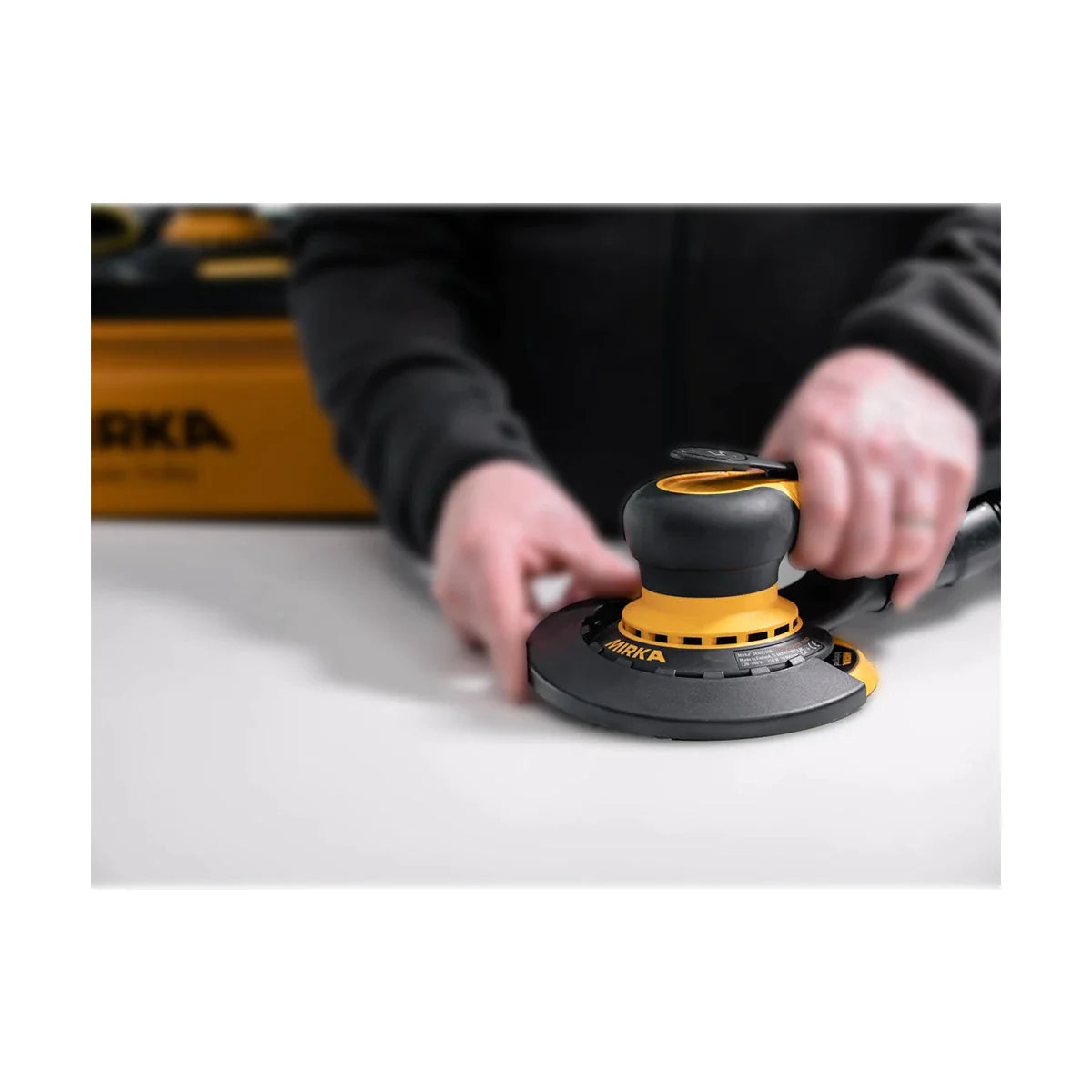 The Edge Protector for Mirka® DEROS 150mm / 6’’ is a simple accessory that can be attached to the machine to prolong the lifetime of the backing pad due to the pad not being in contact with materials. Using the Edge Protector when sanding into corners and edges, the backing pad doesn’t scratch or damage adjacent surfaces.