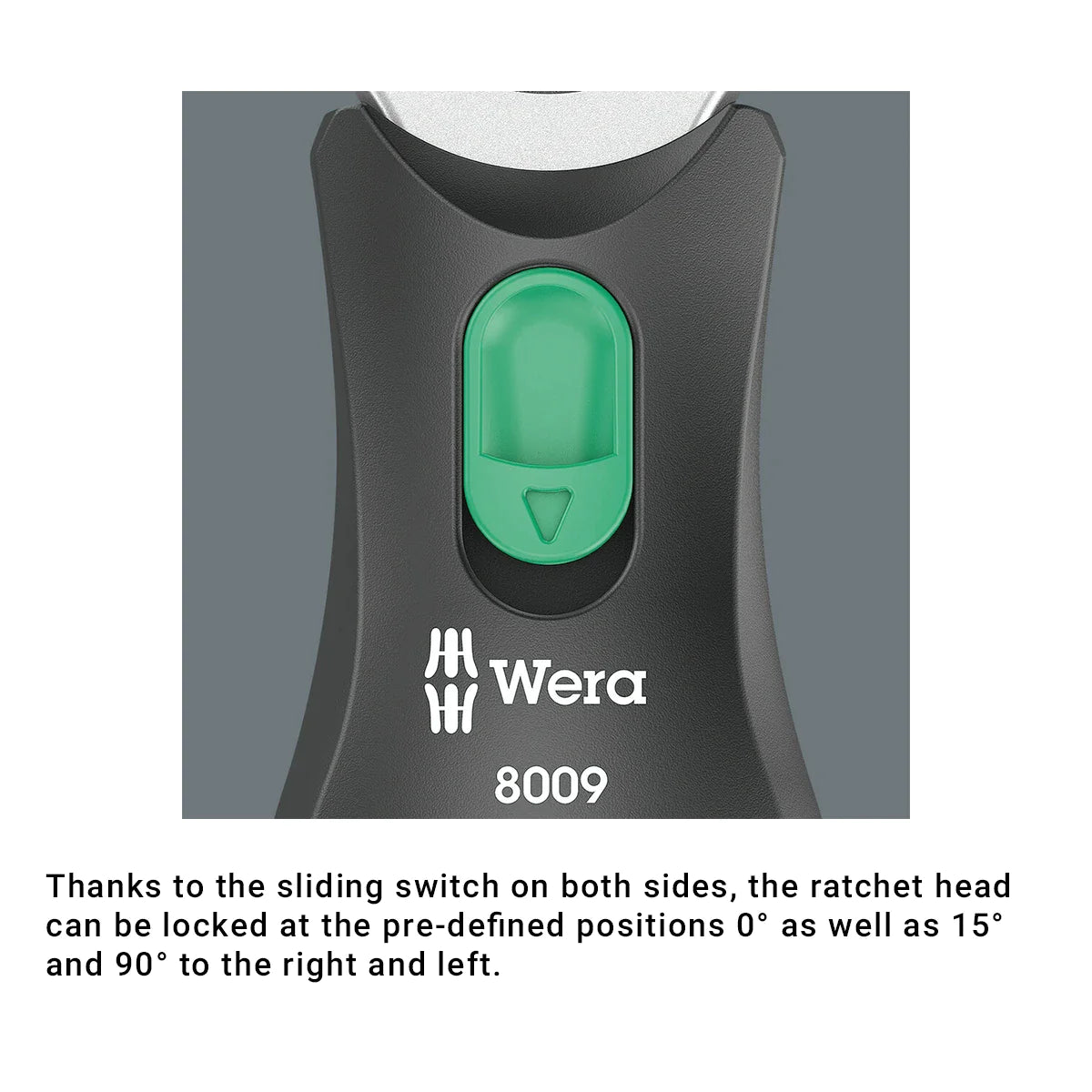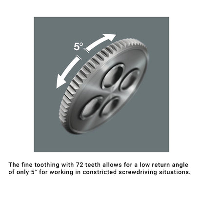 - Fine tooth reversible ratchet (72 teeth) for a low return angle of only 5°