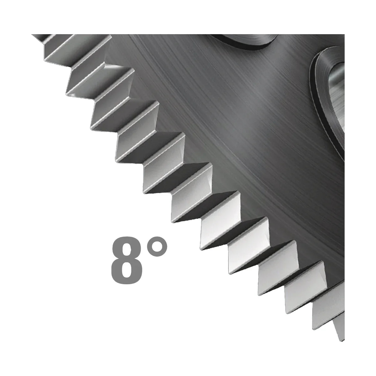 - Fine-pitched teeth for small return angle; switchover ring (right, fixed, left)